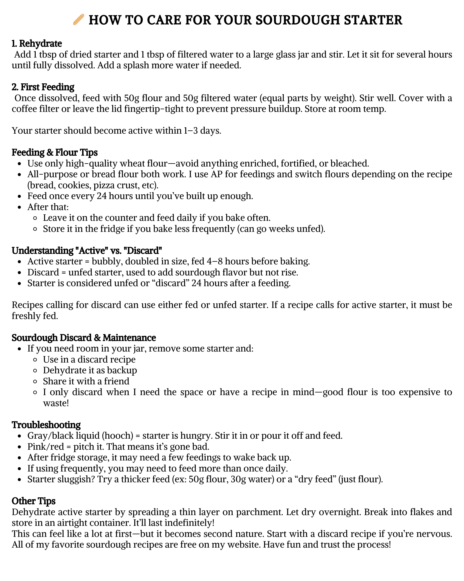 Dehydrated starter stores indefinitely—just keep it in an airtight container until you’re ready to use